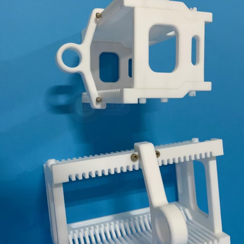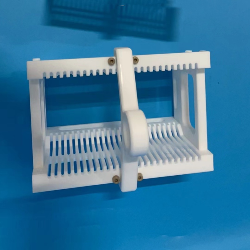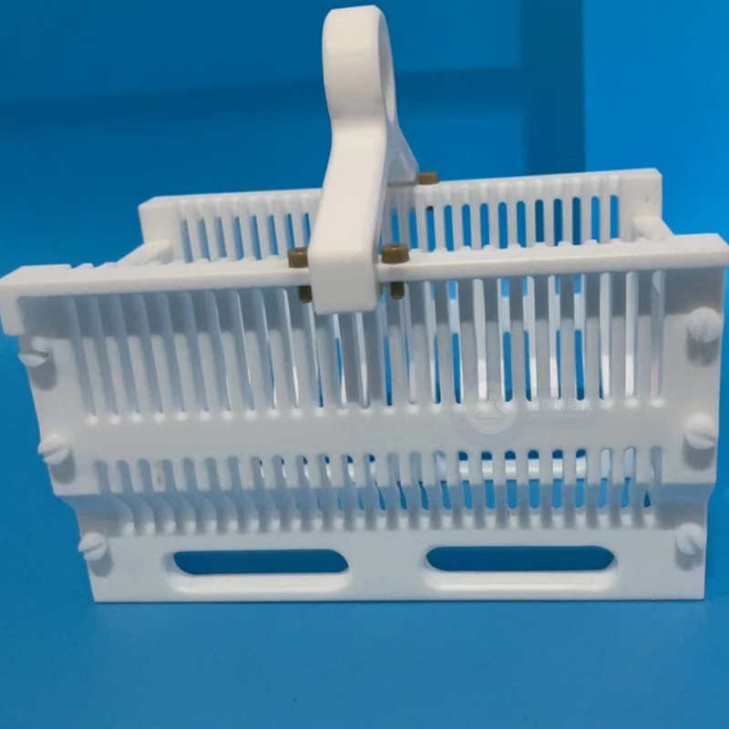 半導體新材料系列 特氟龍清洗花籃清洗架定制四氟模具ITO/FTO顯影去膠 刻蝕花籃 材料:PTFE/四氟 規格:PTFE/四氟 描述:品牌:瑞尼克型號:RNK加工定制:是 用途:清洗 別名:花籃、承載籃 用于半導體硅片,晶片,玻璃,液晶屏等清洗、腐蝕設備的承載花籃,太陽(yáng)能電池片花藍、太陽(yáng)能硅片花藍_太陽(yáng)能硅片承載器、光伏電池片花藍、光伏硅片花藍,用于太陽(yáng)能電池硅片清洗設備··· 產(chǎn)品詳情 品牌:瑞尼克型號:RNK加工定制:是 用途:清洗 別名:花籃、承載籃 用于半導體硅片,晶片,玻璃,液晶屏等清洗、腐蝕設備的承載花籃,太陽(yáng)能電池片花藍、太陽(yáng)能硅片花藍_太陽(yáng)能硅片承載器、光伏電池片花藍、光伏硅片花藍,用于太陽(yáng)能電池硅片清洗設備中,用于承載方形太陽(yáng)能電池硅片,材質(zhì)為PTFE,本產(chǎn)品即在100℃以下的NaOH溶液、HCl溶液、HF等溶液中對硅片進(jìn)行清洗、轉換,且長(cháng)期使用不變形、不污染硅片.特點(diǎn):1.外觀(guān)純白色。2.耐高低溫:可使用溫度-200℃~+250℃。3.耐腐蝕:耐強酸、強堿、王水和有機溶劑,且無(wú)溶出、吸附和析出現象。4.防污染:金屬元素空白值低。5.絕緣性:不受環(huán)境及頻率的影響,介質(zhì)損耗小,擊穿電壓高。6.耐大氣老化,耐輻照和較低的滲透性。7.自潤滑性:具有塑料中小的摩擦系數。8.表面不粘性:是一種表面能小的固體材料。 9.機械性質(zhì)較軟,具有非常低的表面能。